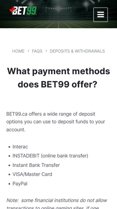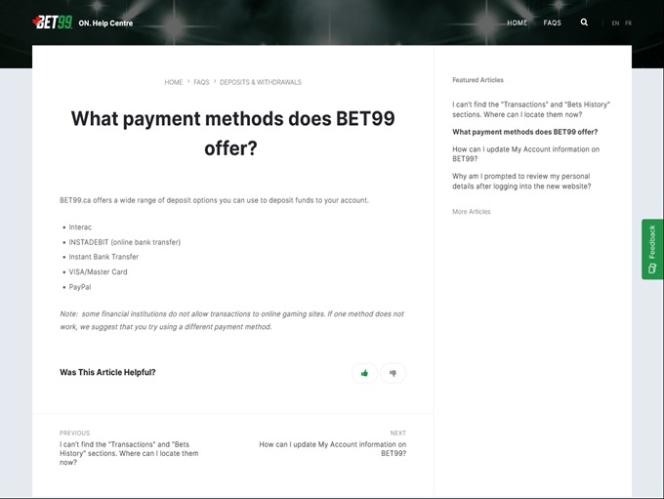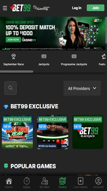 BET99 Casino Ontario 是一家線上體育博彩營運商和賭場,其所有者是一家持有安大略省酒精和博彩委員會 (AGCO) 執照並受其監管的公司。安大略省玩家是該品牌的主要目標客戶。