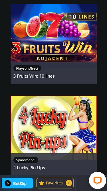 Betadonis 賭場由 Microgaming, Net Entertainment, BetSoft, 1x2gaming, Amatic Industries, Big Time Gaming, Evolution Gaming, EYECON, Ezugi, Genesis Gaming, Habanero Systems, iSoftBet, lightningboxgames, playson, Quickspin, Rabcat, WM, Wazdan, Realistic Games, Booming Games, Pragmatic Play, LuckyStreak, Spinomenal, Red Rake Gaming, Skillzzgaming, Xprogaming, Platipus Gaming, Triple Edge Studios, Northern Lights Gaming, Evoplay, Stormcraft Studios, Switch Studios, SA Gaming, Electric Elephant Games, All41 Studios, Gluck Games, Gameburger Studios, Pulse 8 Studios, Neon Valley Studios, Golden Rock Studios, Spearhead Studios, SpinPlay Games, GONG Gaming, Lady Luck Games, Buck Stakes Entertainment, Games Global, Amusnet Interactive, Wizard Games, 2by2 Gaming, Ainsworth, Pariplay, Tom Horn Gaming, Genii, Spigo, Mr Slotty, MGA, Authentic Gaming, Old Skool Studios, Foxium, Just For The Win, Storm Gaming Technology, PearFiction Studios, Apollo Games, Wild Streak Gaming, Slingshot Studios, Fortune Factory Studios, Gamevy, Crazy Tooth Studio, Alchemy Gaming, Plank Gaming, Black Pudding Games, Snowborn Games, Hacksaw Gaming, Gold Coin Studios, Half Pixel Studios, Aurum Signature Studios and Charismatic提供支持,提供一系列豐富的遊戲,可透過賭場的網路平台暢玩。 Betadonis 還擁有行動網站,玩家可以透過智慧型手機和平板電腦存取體育博彩和賭場。Baccarat