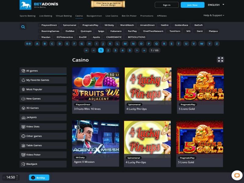 自2013年以來,Betadonis Casino一直為客戶提供多樣化的投注選擇。該網站提供全面的體育博彩、賭場和撲克室,並憑藉豐富的遊戲選擇、豐厚的獎金和完善的銀行系統贏得了許多忠實用戶。賭場資訊
