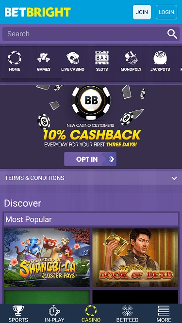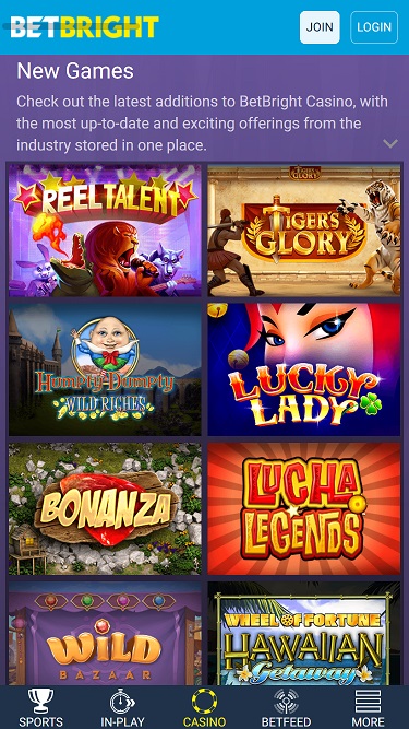 BetBright Casino 由 Microgaming, Net Entertainment, 1x2gaming, Big Time Gaming, ELK Studios, Evolution Gaming, Genesis Gaming, Rabcat, Games Global, 2by2 Gaming, Nektan and NextGen提供支持,其遊戲透過基於網路的平台以及允許隨時隨地玩的行動頁面提供。