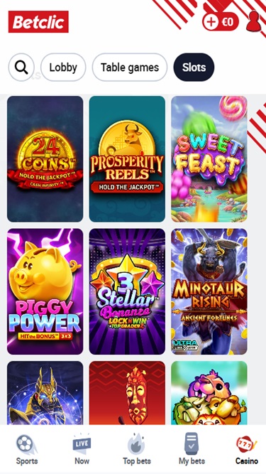Betclic 賭場由 Microgaming, Net Entertainment, Big Time Gaming, Evolution Gaming, Habanero Systems, iSoftBet, lightningboxgames, Oryx, Play'n GO, playson, Thunderkick, Wazdan, Pragmatic Play, Nolimit City, GAMING1, Red Rake Gaming, Fugaso, SYNOT Games, Spin Games, Spinmatic, Triple Edge Studios, Stormcraft Studios, All41 Studios, Gameburger Studios, Games Global, Amusnet Interactive, Wizard Games, bluberi, NextGen, Pariplay, Tom Horn Gaming, WMS, SG Interactive, Gamomat, Scientific Games, MGA, Betdigital, PearFiction Studios, Wild Streak Gaming, Slingshot Studios, RubyPlay, Hacksaw Gaming, Gaming Corps, Atomic Slot Lab, Reel Kingdom, Indigo Magic and Light & Wonder提供支持,並透過網頁平台提供遊戲。該賭場還為希望在智慧型手機和平板電腦上玩遊戲的玩家提供行動網站。Baccarat