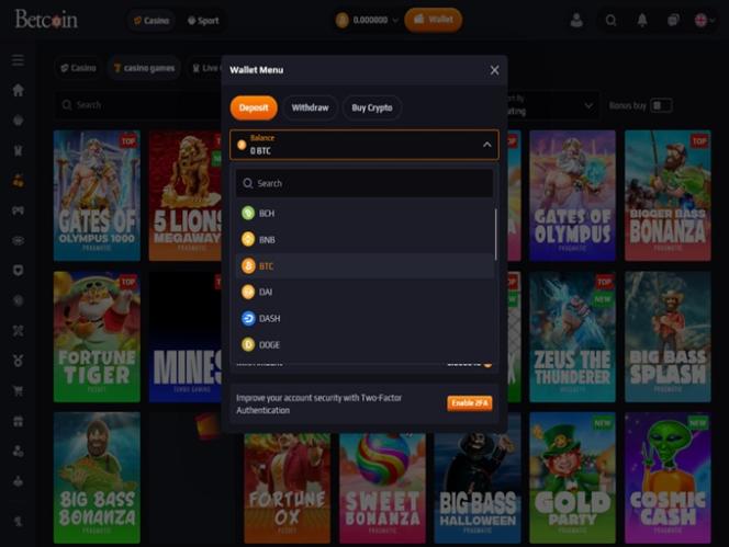 Betcoin 賭場為玩家準備了超過 40 個工作室名稱供其選擇。這並非我們見過的最大數量,但足以滿足各種類型的玩家的需求,讓他們找到自己喜歡的遊戲。