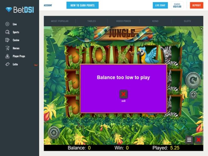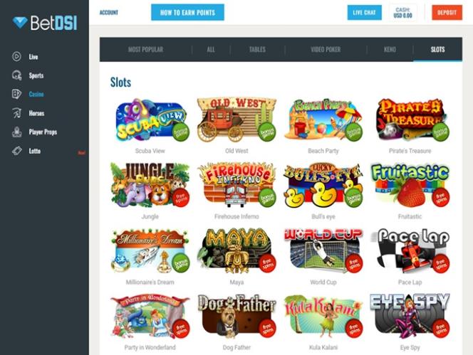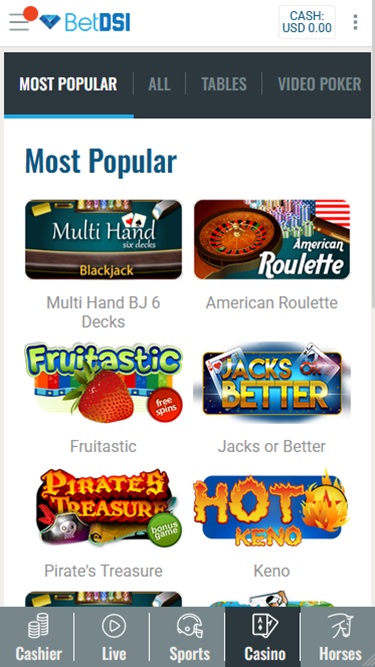 BetDSI 的老虎機遊戲還不錯,雖然主要提供舊遊戲。由於沒有現代老虎機常見的複雜且令人眼花撩亂的獎勵功能,所以玩家很容易上手。