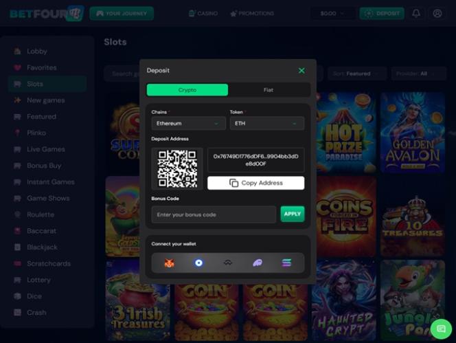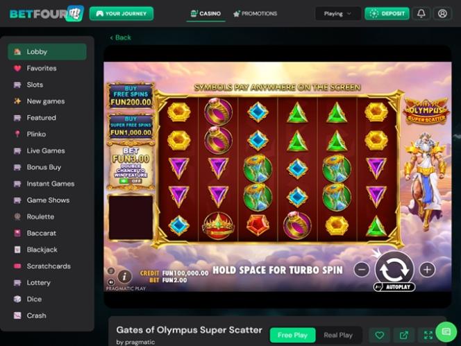 BetFourU 賭場平台擁有使用者友善的介面佈局,頁面導航也十分方便。除了豐厚的迎新禮包外,玩家還可以享受多種支付方式和豐富的遊戲選擇。