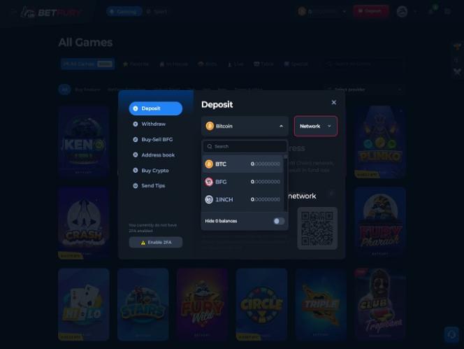 BetFury 擁有豐富的遊戲產品組合,提供超過五千款由知名線上賭場軟體開發商製作的遊戲。其合作夥伴包括 NetEnt、BetSoft、Evolution Gaming、Wazdan 等業內巨頭,以及其他提供卓越博彩解決方案和服務的知名公司。