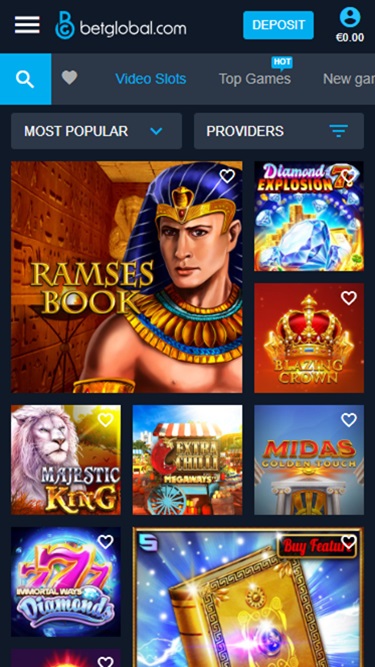 如果您最喜歡線上老虎機遊戲,那麼 BetGlobal 賭場將為您提供無與倫比的選擇。說到這裡最受玩家歡迎的遊戲,您可以考慮以下遊戲: Ramses Book、Diamond Explosion 7s、J Mania Golden Eggs、Majestic King、Extra Chilli Megqaways、Immortal Wave Diamonds、Blazing Crown、Book of Demigods ll、Lady Wolf Moon 和 Megaways、Midas。