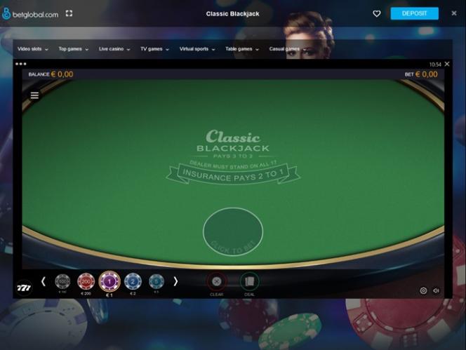 BetGlobal Casino Blackjack (Microgaming)展開