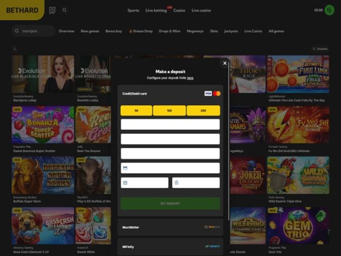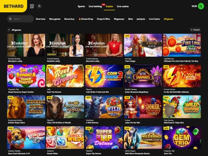 Bethard Casino 由 Microgaming, Net Entertainment, Barcrest, Big Time Gaming, ELK Studios, Evolution Gaming, iSoftBet, lightningboxgames, Play'n GO, Rabcat, Relax Gaming, Thunderkick, Yggdrasil, Pragmatic Play, Nolimit City, Red Tiger Gaming, Fantasma Games, Triple Edge Studios, Stormcraft Studios, Electric Elephant Games, All41 Studios, Gluck Games, Gameburger Studios, Neon Valley Studios, Golden Rock Studios, Shuffle Master, SpinPlay Games, GONG Gaming, Blue Guru Games, Games Global, Blueprint Gaming, NextGen, NYX Interactive, Push Gaming, WMS, SG Interactive, Scientific Games, Reel Time Gaming, Foxium, Just For The Win, Reflex Gaming, Storm Gaming Technology, Wild Streak Gaming, Slingshot Studios, Fortune Factory Studios, Jade Rabbit Gaming, Green Jade Games, 4ThePlayer, AvatarUX, Gamevy, ReelPlay, Alchemy Gaming, BB Games, Hacksaw Gaming, Gold Coin Studios, Bang Bang Games, Slotmill, Peter And Sons, Lucksome Gaming and Area Vegas提供支持,賭場的遊戲透過基於網路的平台以及允許在智慧型手機和平板電腦上玩的行動投注網站提供。
