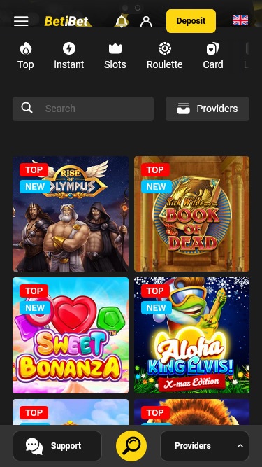賭場平台設計現代,美觀大方。此外,它介面友好,玩家可以輕鬆瀏覽各個類別。流暢的操作和先進的功能為玩家帶來了積極的體驗。 BetiBet 深諳此道,並對 iGaming 趨勢有著深入的了解。