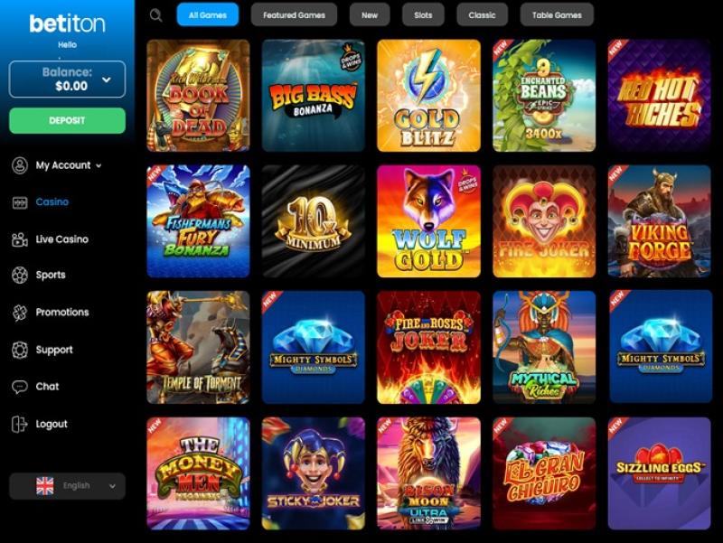 這家線上賭場實際上是體育博彩和娛樂中心的結合體,玩家可以在這裡暢玩熱門的老虎機和桌上遊戲。 Betiton 提供多種貨幣選擇、可兌換的忠誠度積分、獨家淘汰功能等等,並採用線上體育博彩中常見的暗黑主題。