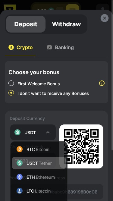 這家線上賭場的另一個主要優勢在於,除了傳統的支付方式外,它還允許玩家使用多種加密貨幣進行存款和提款。對於那些希望獲得更高安全性和更快交易速度的玩家來說,這一點無疑會讓他們感到滿意。
