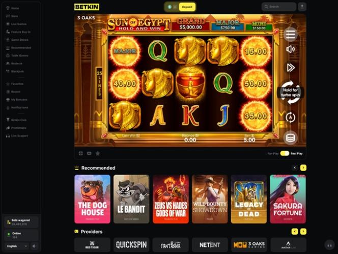 對於主要對真錢老虎機感興趣的玩家來說,Betkin Casino 絕對不缺精彩選擇。該品牌已成功經營多款線上老虎機,因此即使是最資深的玩家也會對其提供的服務感到滿意。如果您不確定該玩什麼,請務必查看以下這些備受歡迎的玩家推薦: