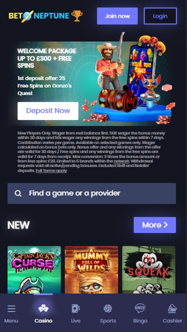 該賭場採用完美優化的平台,無論使用何種設備訪問網站,都能提供良好的遊戲體驗。這意味著無論使用電腦還是行動設備,玩家都可以瀏覽所有可用的遊戲。乍一看,BetNeptune 的遊戲庫令人印象深刻,讓我們來一探究竟吧!