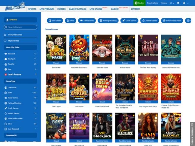 BetPhoenix Casino 由 BetSoft, Visionary iGaming, BGAMING, Mancala Gaming, KA Gaming and Yeebet Gaming提供支持,其遊戲可透過基於網路的平台進行玩。