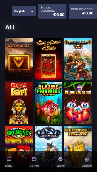 Playtech, 1x2gaming, Barcrest, Big Time Gaming, ELK Studios, Evolution Gaming, EYECON, lightningboxgames, Play'n GO, Rabcat, Thunderkick, Pragmatic Play, Nolimit City, Red Tiger Gaming, Spinomenal, Kalamba, Skywind, Triple Edge Studios, Northern Lights Gaming, Stormcraft Studios, Switch Studios, All41 Studios, Gluck Games, Gameburger Studios, Pulse 8 Studios, Neon Valley Studios, Shuffle Master, SpinPlay Games, Real Dealer Studios, GONG Gaming, On Air Entertainment, Buck Stakes Entertainment, Games Global, Blueprint Gaming, NextGen, Tom Horn Gaming, WMS, Inspired Gaming, SG Interactive, Red7Mobile, CORE Gaming, Scientific Games, Reel Time Gaming, Iron Dog Studio, Old Skool Studios, Foxium, Just For The Win, PearFiction Studios, Slingshot Studios, Fortune Factory Studios, Gamevy, Crazy Tooth Studio, ReelPlay, Alchemy Gaming, Black Pudding Games, Snowborn Games, Hacksaw Gaming, Gold Coin Studios, Half Pixel Studios, Aurum Signature Studios and Lucksome Gaming提供支持,其遊戲透過基於網頁的即時遊戲平台提供,您可以透過網路瀏覽器註冊、存款和玩遊戲。該賭場還支援行動遊戲,這意味著玩家可以透過智慧型手機和平板電腦存取大多數遊戲。