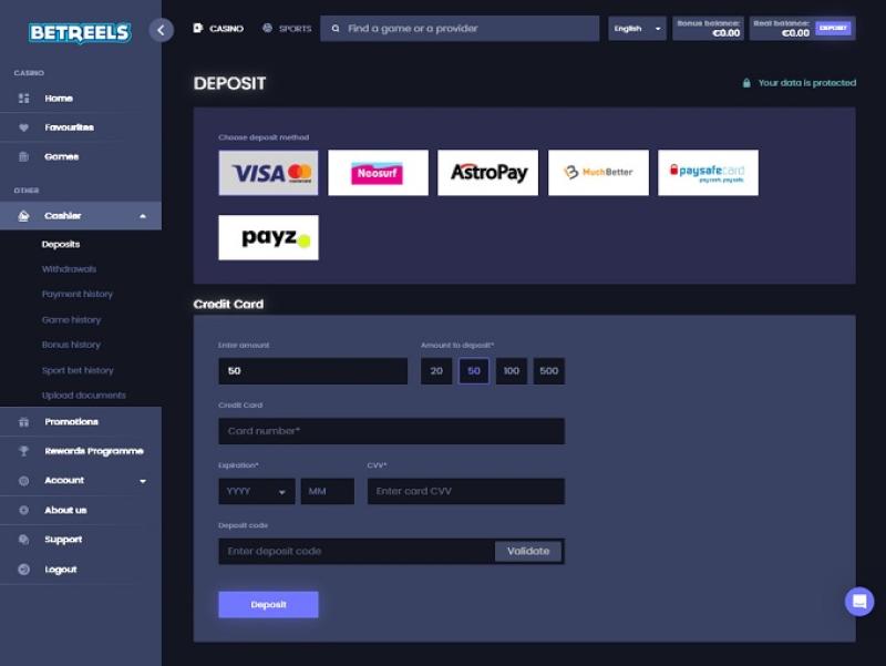 瀏覽Betreels Casino的條款和條件,沒有任何明顯的不公平或掠奪性條款。 Betreels Casino的銀行系統非常可靠,賭場接受Visa、Mastercard、Neteller、Skrill和Maestro卡的存款和提款。您也可以透過Boku、Paysafecard和Polo進行存款。支付的等待時間為72小時,這個時間太長了,而且每日取款限額為2,000英鎊,每月取款限額為5,000英鎊。