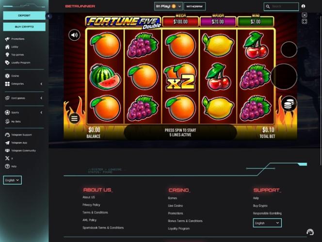但這還不是全部。除了提供許多傳統的線上賭場遊戲外,Betrunner Casino 還設有單獨的體育博彩版塊,提供數十種體育和電子競技選項,您可以在比賽開始前或比賽期間進行投注。