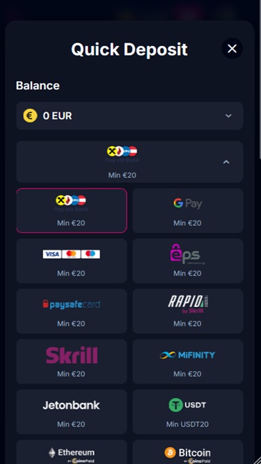 - 請注意,由於加密貨幣的性質,存款限額不適用於透過加密貨幣支付系統充值的資金。如果您希望使用存款限額,則需要選擇其他付款選項。