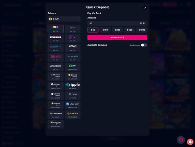 在賭場遊戲方面,您可以期待一流的桌面遊戲、即時贏取、獎金購買、真人賭場選項…