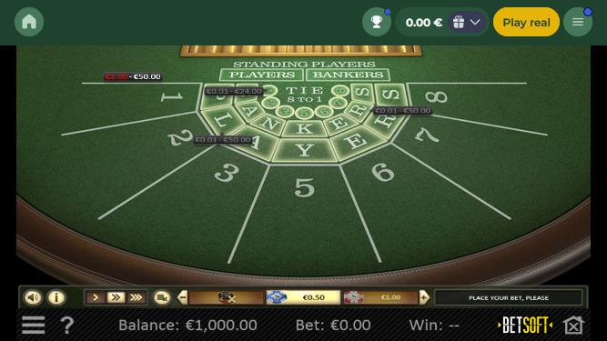 賭場之間因為競爭的緣故, Baccarat百家樂在tie和局通常⽀付9⽐1賠率, 或是Banker莊家的押注⽀付0.96的賠率, 不過Microgaming的賭場提供與 陸上賭場相同的標準規則。
