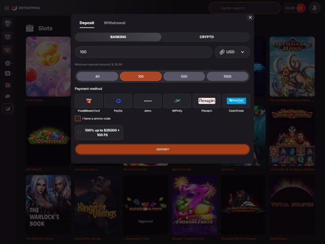 Banking銀⾏業務選項 的 BetSomnia Casino