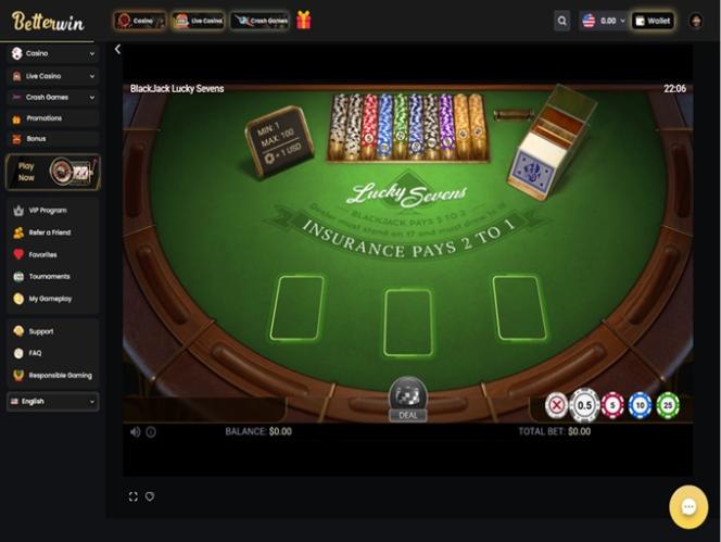 BetterWin Casino Blackjack (Real Time Gaming)展開