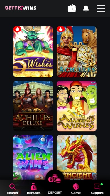 BettyWins 賭場是一家致力於為玩家提供豐富多樣的線上老虎機遊戲的博彩網站。如果您是老虎機遊戲的愛好者,這裡有很多不錯的選擇。不妨試試以下熱門真錢老虎機遊戲: