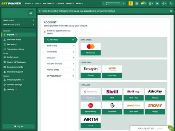 除了常規賭場外,BetWinner 還為客戶提供真人荷官賭場、體育博彩和撲克室。