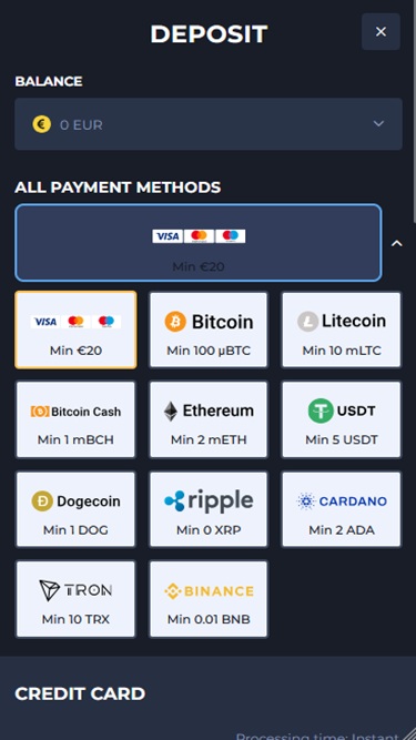 崩潰遊戲部分包括一些有吸引力的賭場遊戲,例如 Crash、Chicky Run、HiLo、Space XY、Olympus Plinko、Plinko Rush、Limbo Cat、Jackpot Mines、Minesweeper、Raging Zeus Mines、Mummy's Mines、Minesweeper XY、AirBoss、CosmoX、Dice Xasals、Dicek、Dalk、Mlink、Plink、Plink、Plink、Plink、Plink、Plink、Plink、Plink) XY、Plinko、PlinkoS、Plinko、Xmas Plinko、Plinko 2…