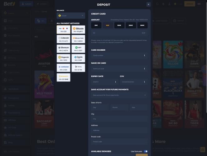 要成為 Bety.com 的賭場會員並註冊新帳戶,您只需完成一個簡單的步驟和一個快速的電子郵件確認。這將為玩家提供對玩家控制面板和賭場服務的完全訪問權限,以及諸如四個級別的忠誠俱樂部、各種賭場獎金和促銷活動、豐富的遊戲庫等等。