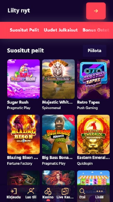 賭場平台優雅美觀,使用者友好,導航簡單直覺。網站針對所有可用裝置(包括桌上型裝置和行動裝置)進行了最佳化,並提供芬蘭語、英語和挪威語在地化。其簡潔的設計方案營造出寧靜的氛圍,並提供卓越的功能。