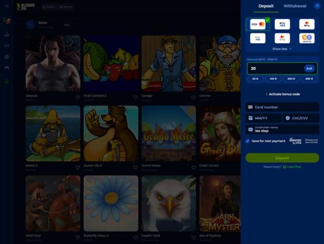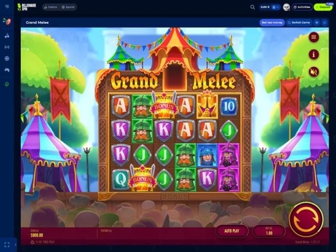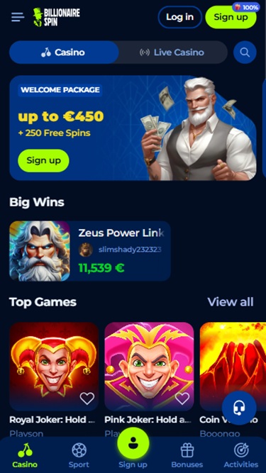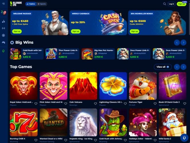 Billionaire Spin 於 2025 年上線,是一個全新的博彩網站,為玩家提供豐富的賭場遊戲,包括真錢老虎機、真人荷官、速成遊戲和刮刮卡,以及一個提供豐富選項的大型體育博彩板塊。該品牌提供強大的促銷計劃和豐富的獎金,並為尋求更現代支付方式的玩家提供加密貨幣支付服務。