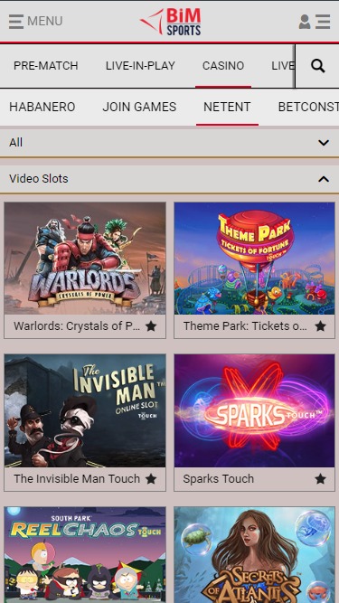 Bimsports 賭場由 Net Entertainment, 1x2gaming, ELK Studios, Habanero Systems, playson, WM, Endorphina, GameArt, BetConstruct, Pragmatic Play, ZEUS Services, Wizard Games, CT Interactive, Multi Slot Casinos, NextGen, omi-gaming, Pariplay, Genii, Mr Slotty and Join Games提供支持,其遊戲透過網頁平台提供,可直接透過您的網路瀏覽器加載,無需下載繁瑣的軟體。該賭場還全面支援行動端遊戲,您可以在智慧型手機或平板電腦上投注。