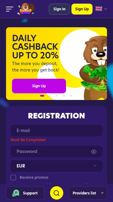 作為一個名字裡就帶著「賓果」的品牌,它豐富的賓果遊戲選擇定會給遊戲愛好者留下深刻印象。他們可以嘗試:Mega Ball 100 First Person、Instant Bingo、Extra Bingo、Cash or Crash Live、Jogo do Bicho…