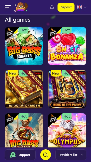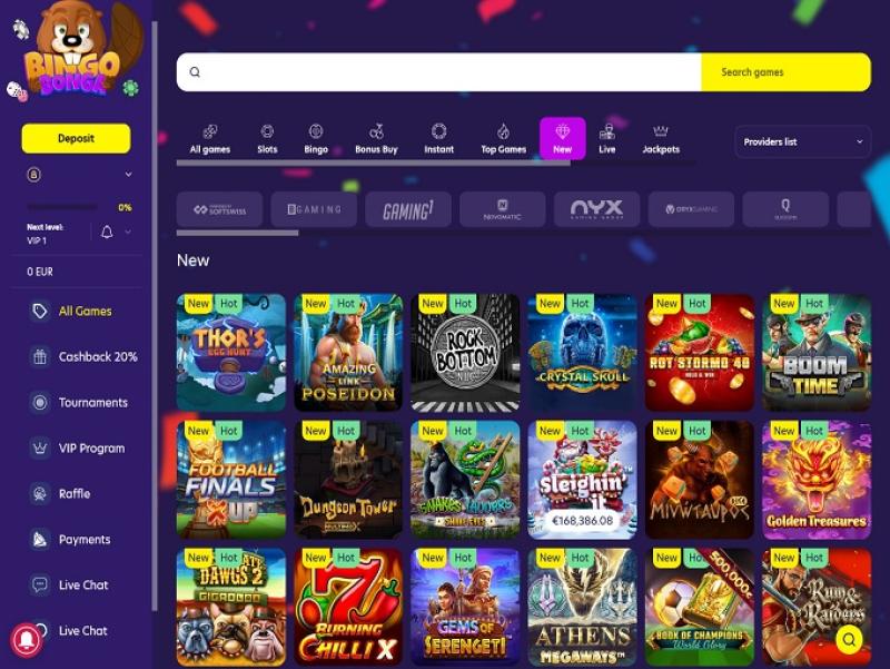 Bingo Bonga Casino 與許多優秀的 iGaming 軟體開發商合作,涵蓋各種線上賭場遊戲類型。玩家可以嘗試眾多經典賭場熱門遊戲,同時遊戲庫中也包含大量新遊戲,遊戲庫會定期更新。
