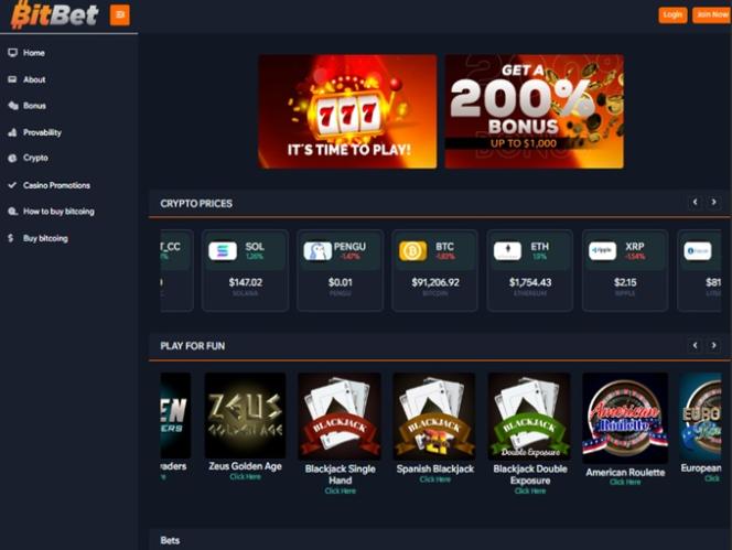 BitBet Casino 是一家僅接受加密貨幣的線上賭場,針對美國玩家。這是一個小型遊戲網站,沒有可見的許可證印章。
