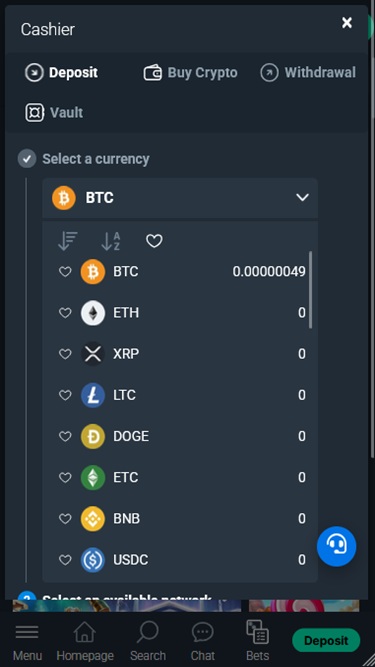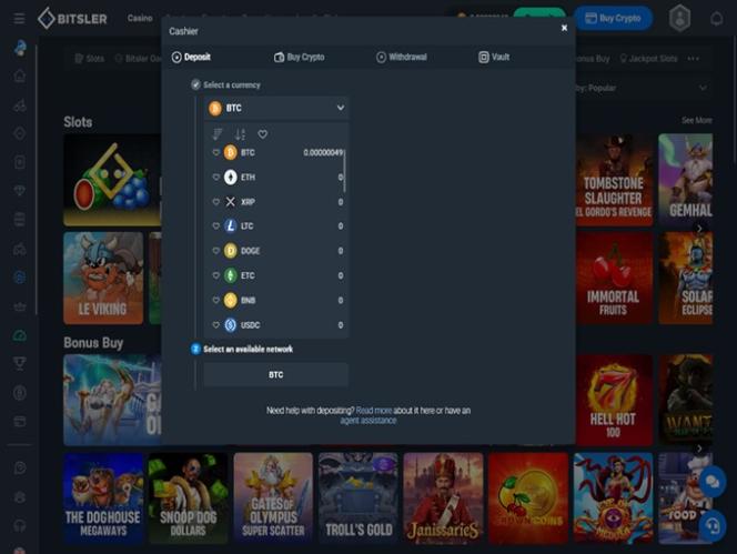 Bitsler Casino 僅支援加密支付方式,這通常意味著快速存款和提款。