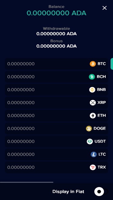 這是一個僅接受加密貨幣的博彩場所。如果您尚未切換為使用加密貨幣錢包為您的賭場帳戶充值,您仍然可以使用支付卡並透過賭場的收銀台購買加密貨幣。
