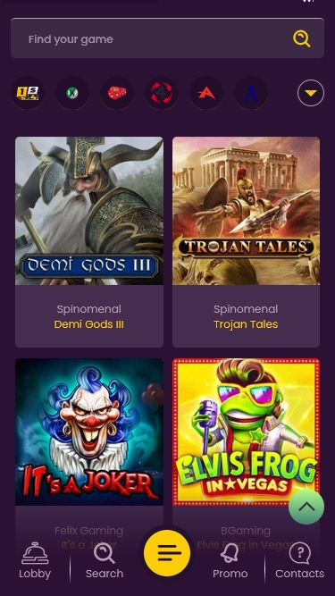這家線上賭場的平台設計簡潔生動,充滿藝術感的細節,客製化的圖標和精美的玩家頭像。紫色的色調營造出溫馨寧靜的氛圍,賞心悅目。整體印像是,類別和板塊井然有序,頁面導航便捷。
