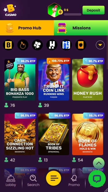 正如我們之前提到的,Bizzo 為每個人都提供了適合自己的遊戲。玩家可以使用位於中央的搜尋欄,依遊戲名稱尋找自己喜歡的遊戲,也可以直接瀏覽遊戲類別。 Bizzo 提供各式各樣的線上賭場遊戲。