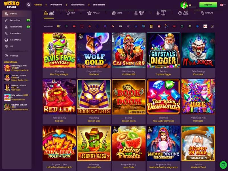 就 Bizzo 而言,長長的賭場供應商名單讓老虎機部分擠滿了頂級遊戲:Cazombie、It's a Joker、777 Spinbox、Elvis Frog in Vegas、Hot & Spicy、Johnny Cash、Book of Eye、Assasin Moon Hyper Hold、Mechanical Clover、100 Joker Staal 100 Way、#buyBonus of Maya、Book of Cats、Wolf Power Hold and Win、Moon Sisters: Hold and Win、3 Coins、Book of Cai Shen、Book of Divine、Book of Tribes Reloaded、Buffalo Rampage、Fire in the Hole xBomb、Fourux Diamonds Dream、Kitsune's Scrap、Fire in the Hole xBomb、Fouruxs Dreamen、Kitsune's Football、Knockout Football Rush、London Hunter、Magic Oak、Presto!、Pumpkin Patch、Santa's Village...