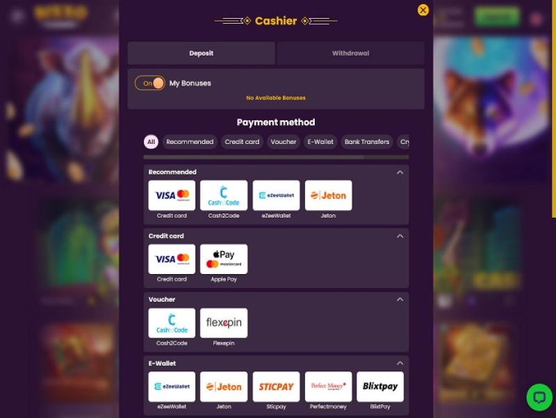 透過銀行轉帳提款需支付中介銀行的額外費用。在 Bizzo Casino,玩家可以使用一些最受歡迎、最安全的銀行方式進行存款和提款,例如支付卡、電子錢包和多種加密貨幣支付選項。
