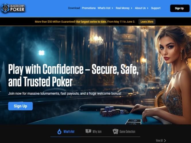 在深入探索可用的賭場選項之前,先提一下,這個品牌隸屬於規模更大的Winning Poker Network (WPN)。儘管該運營商主要面向美國玩家,但國際玩家也可以在這裡試試運氣,享受樂趣。綜上所述,我們可以肯定地說,Black Chip Poker 能滿足每個人的需求。
