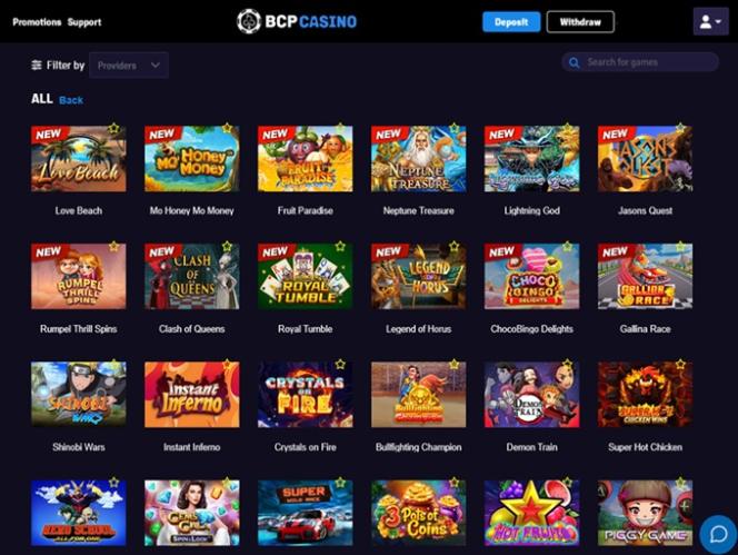品牌提供的線上賭場遊戲由Eurasian Gaming、Reevo、Qora Gaming、Dragon Gaming 和 Popiplay等軟體供應商設計。這些開發商提供種類豐富的遊戲,涵蓋大多數熱門賭場類別。