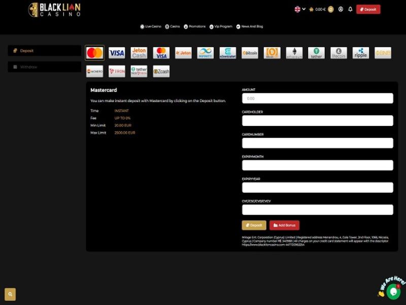 賭場的出納員支援各種常用的存款和提款方式,包括熱門支付卡、電子錢包、直接銀行轉帳和加密貨幣銀行。請注意,部分加密貨幣支付選項需要支付交易費。