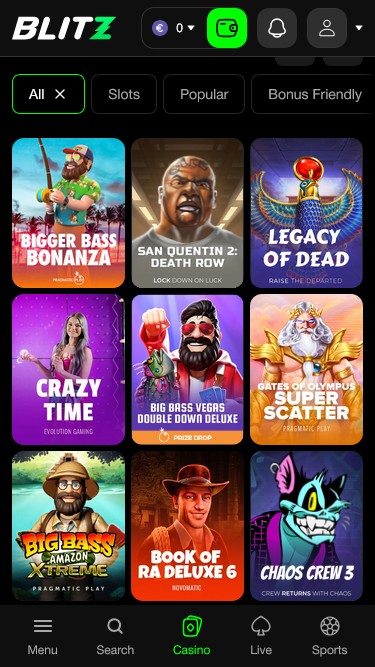 Blitz.Bet是一家支援加密貨幣的線上賭場和運動博彩平台, 提供種類繁多的賭場遊戲和體育賽事。從老虎機和百家樂、二十一點 或輪盤等經典桌遊,到投注您喜愛的運動隊伍,您都能輕鬆找到自己喜歡的遊戲!