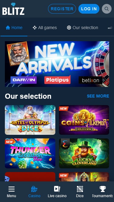 Blitz Casino 由 BetSoft, Ezugi, Novomatic, Endorphina, GameArt, Pragmatic Play, GAMING1, Air Dice, Spinomenal, SYNOT Games, Fazi, Mancala Gaming, Amusnet Interactive, CT Interactive, Greentube and betiXon提供支持,其遊戲透過基於網頁的即時遊戲平台提供,可直接透過您的網頁瀏覽器載入。該賭場還支援行動端遊戲,用戶可以透過智慧型手機或平板電腦參與遊戲。