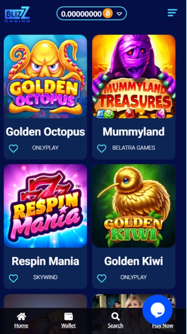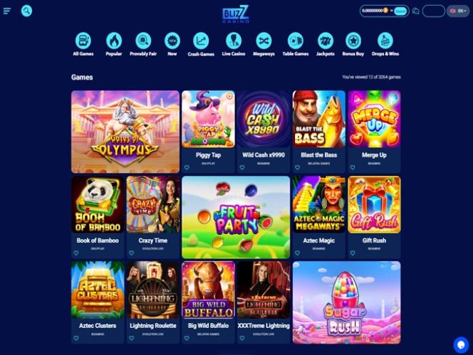 豐富的遊戲庫分為賭場和真人娛樂場部分,還有比賽和促銷活動,為賭客在 Blizz Casino 的逗留增添樂趣。
