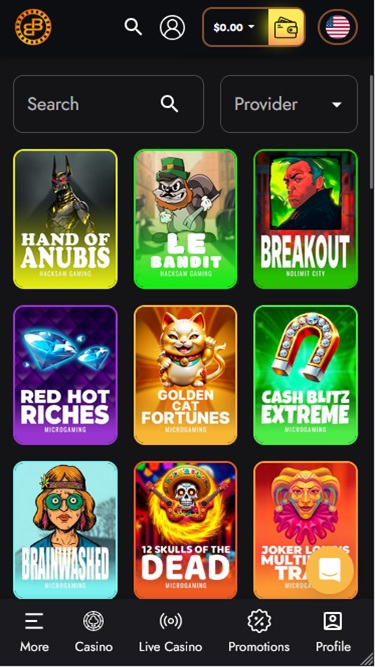 正如預期的那樣,BlockBets 賭場支援任何設備訪問,這意味著該網站已進行跨平台優化。無論使用何種設備或作業系統,只要有穩定的網路連接,您都能在這裡獲得完美的體驗,暢玩包含眾多頂級遊戲的豐富遊戲庫。讓我們一起深入探索賭場的精彩內容吧!
