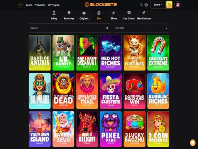 BlockBets 為會員提供超過五千款線上老虎機遊戲供您暢玩。賭場擁有豐富的老虎機遊戲庫,涵蓋熱門主題、尖端畫面、逼真且設計精良的音效,所有遊戲均設有激動人心的獎勵系統,包括獎勵旋轉、乘數、百搭符號等。